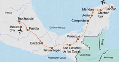 Das Hauptinteresse der bunt zusammengewürfelten und doch so homogenen Reisegruppe galt der vorspanischen Kultur, deren Reste weit zerstreut zwischen Mexiko-Stadt und der Karibik zu besichtigen sind.